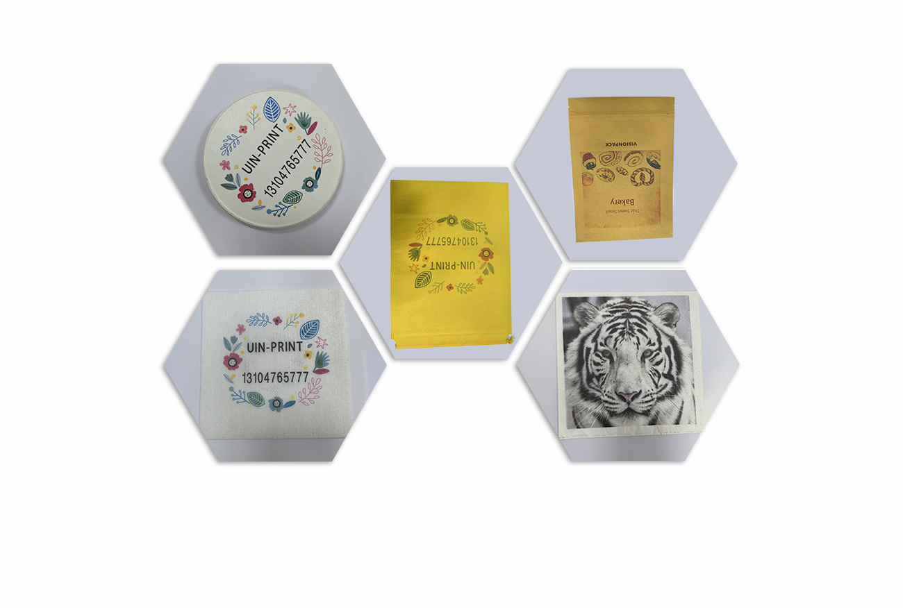 Single pass UIN-900A digital printer with suction feeding, Newly style digital color inkjet printer, lt can print on the surface of various absorbent materials such as Kinds of paper,absorbent fabric,napkin、non-woven fabric etc, and customize printing with personalized designs without waiting or plate-making.lmport then printing immediately, quick and convenient. Water-based environment ink, CMYK printing . lt is very suitable for rush orders, small orders, color orders, and e-commerce orders.